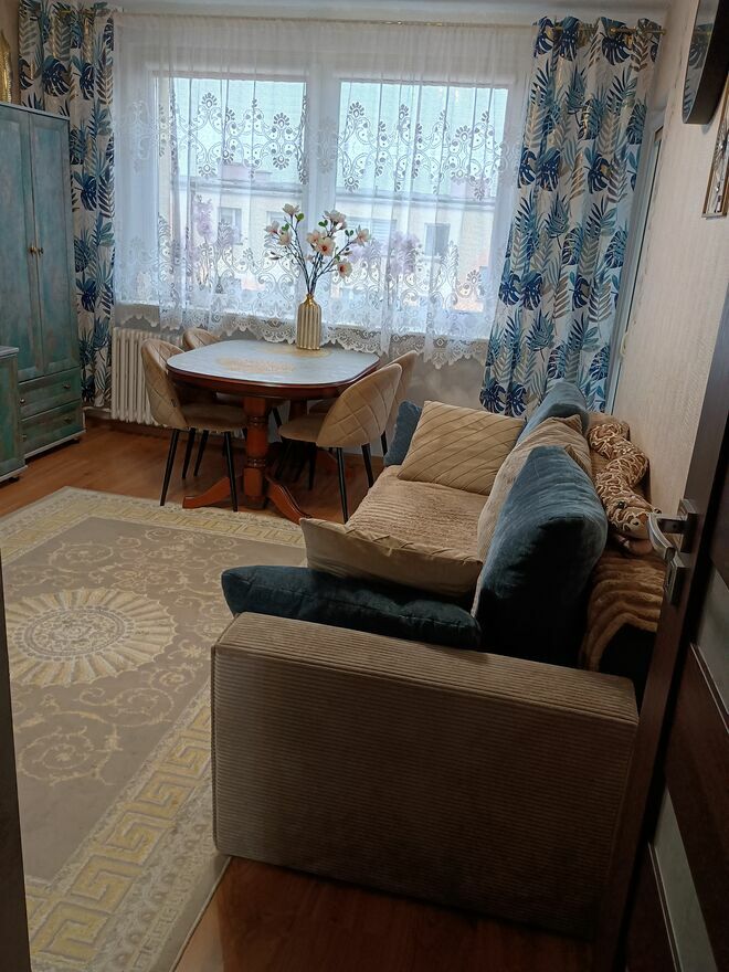 2 pokoje,,4 pietro- piękne widoki, dookoła dużo zieleni, bardzo dobra lokalizacja, mieszkanie po remoncie,nowe meble+ sprzęt AGD,telewizor 50 cali, wi-fi, Netflix,oraz całe wyposażenie wnętrza,balkon z zabudowanym oknem, ciepłe, słoneczne.Czynsz do wspólnoty mieszkaniowej około 700zł z Co z sieci miejskiej bez podzielników,ciepła woda,śmieci,fundusz remontowy,ścieki.Dodatkową opłatą jest za prąd.Goraco polecam.Niski koszt utrzymania.